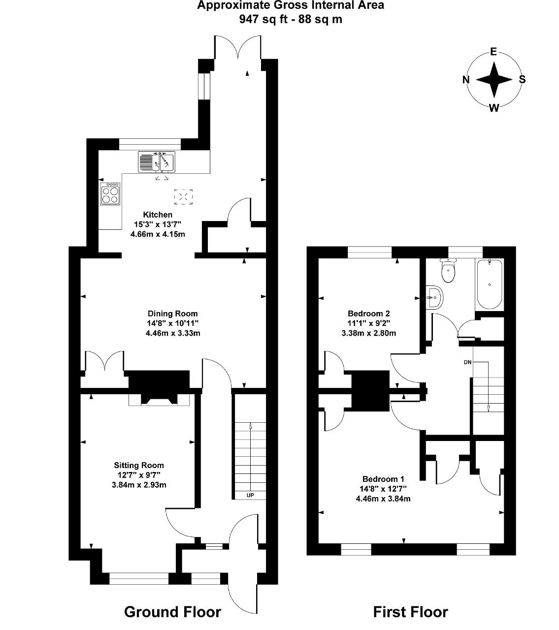 Bedroom 1 - 14'8" x 12'7" (4.46m x 3.84m) (Originally two rooms, and easily reinstated to provide a double and single bedroom.) Pair of windows with some views of the South Downs. Double and single radiator. Original fireplace. Pair of wardrobe cupboards.