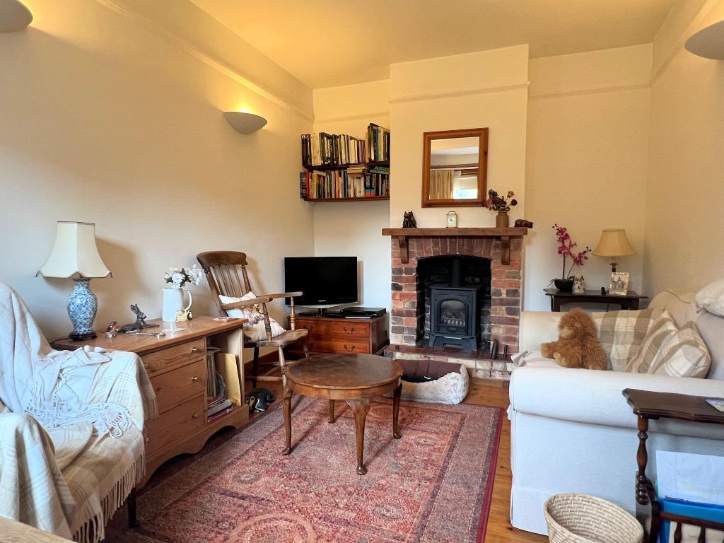 Sitting Room - 12'7" x 9'7" (3.84m x 2.93m) Pair of sash windows overlooking the front garden. Brick fireplace with quarry hearth, timber mantel and gas-fired stove. Exposed floorboards. Double radiator.