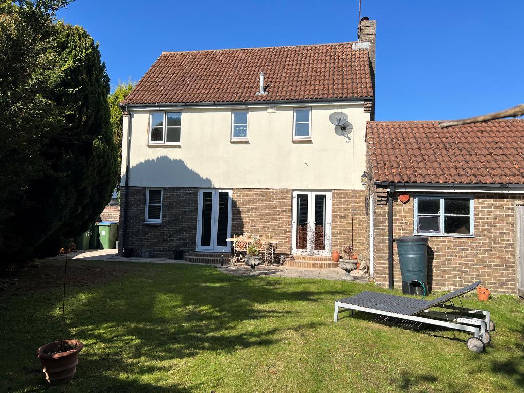 The detached house (linked by garage) was built in the early 1980s with attractive brick and rendered elevations under an interlocking tiled roof. Well presented throughout, there is a light and spacious open plan kitchen/dining room, sitting room with open fireplace, modern white sanitary ware and a private south-facing garden to the rear. There is PVCu double-glazing to windows and doors and gas-fired central heating to radiators.