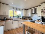 Kitchen - 12'8" x 10'11" (3.86m x 3.34m) Overlooking the rear garden. Comprehensively fitted with oak work surfaces and a good range of cupboards and drawers. Ceramic one-and-a-half bowl sink unit. Recess for cooker with filter hood over. Space and plumbing for dishwasher and space for American fridge/freezer. Large peninsula breakfast bar. Recessed ceiling lighting. PVCu double-glazed sliding door to conservatory.