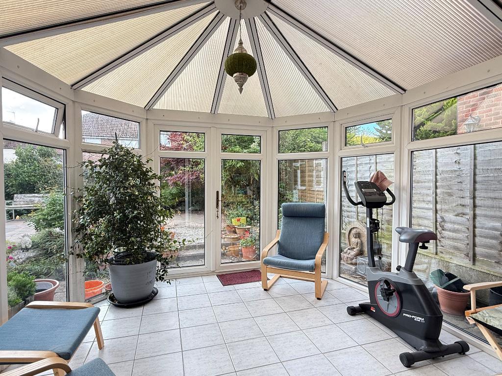 Conservatory - 11'6" x 11'0" (3.50m x 3.36m) PVCu construction with side vents and double French doors opening to the garden. Ceramic tiled flooring.