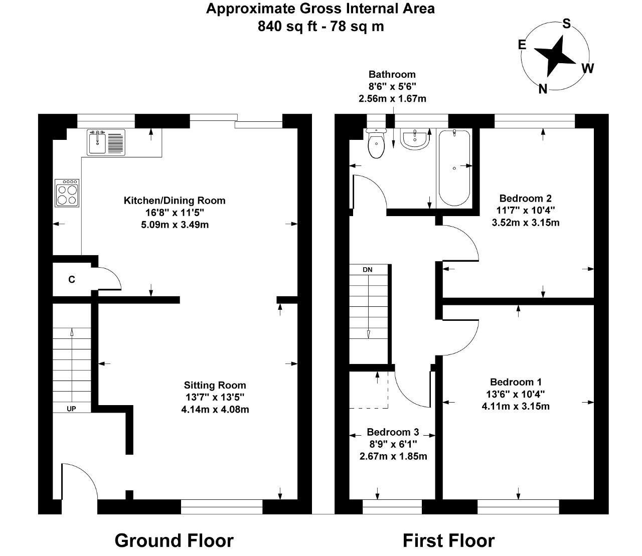 An end-of-terrace house with brick and part-tile hung elevations under a pitched and tiled roof with PVCu double-glazed windows and gas-fired central heating to radiators. The house has been very well maintained, has a modern kitchen with white gloss units and a modern white bathroom suite.