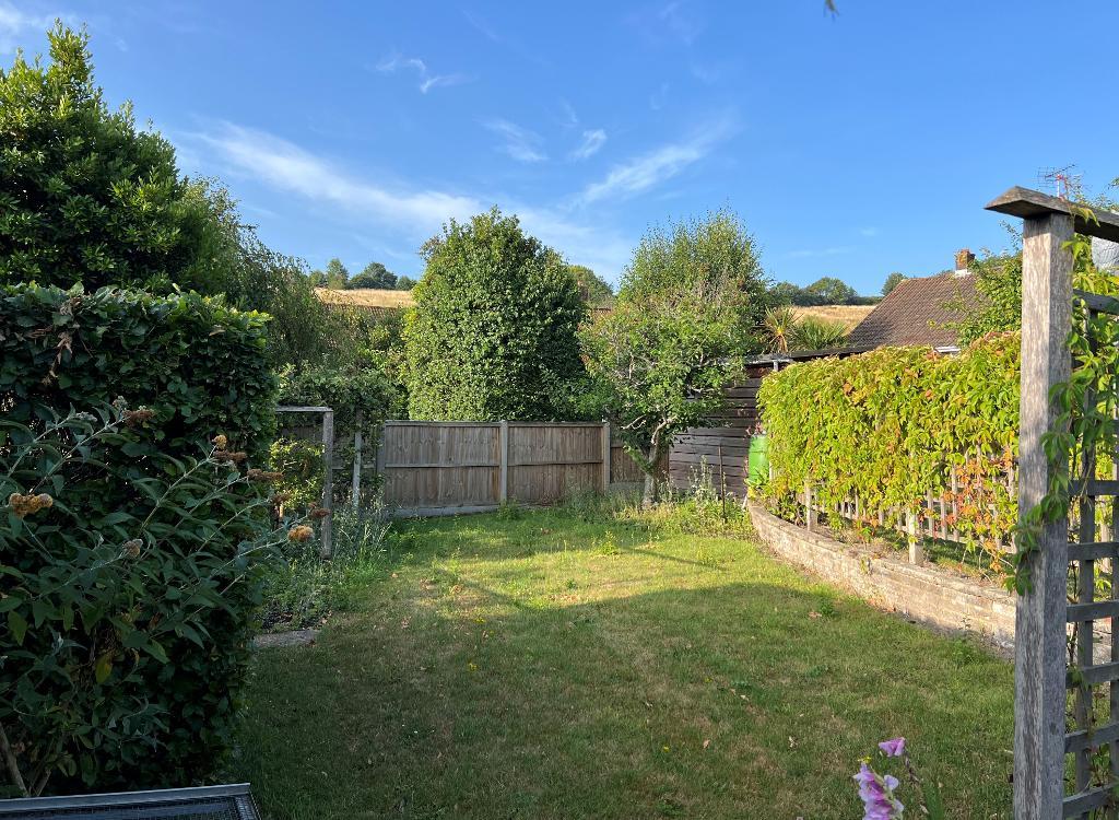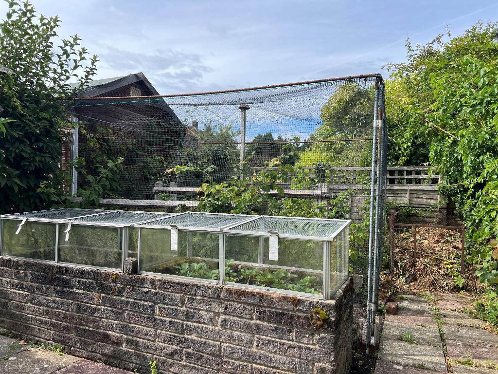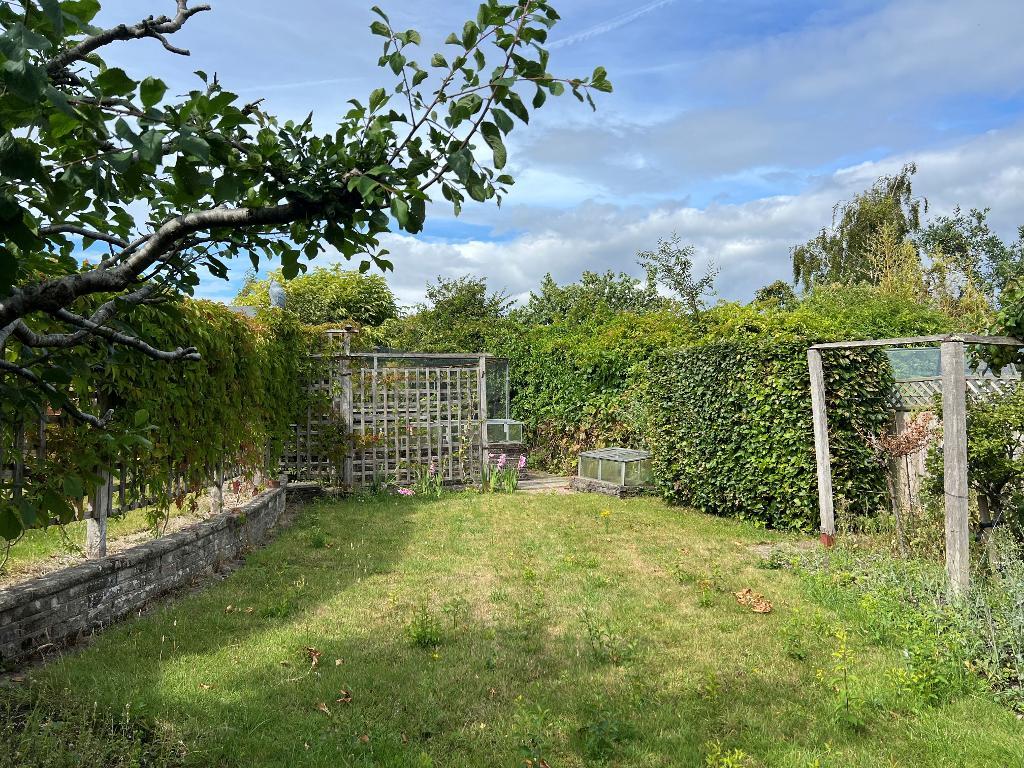 Rear Garden - Contained by hedge and fencing with a paved, secluded terrace adjoining the rear of the bungalow. Paved pathways flanking an area of lawn with fruit trees, summer house and further garden area beyond screened by trelliswork. Productive fruit cage. Further lawn and apple trees.