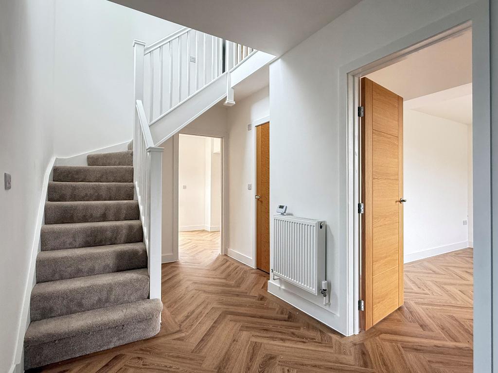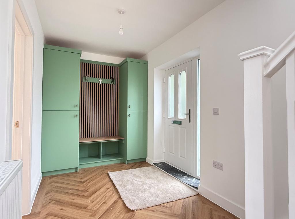 Spacious Entrance Hall - Herringbone patterned flooring. Stairs leading to the first-floor accommodation. Understairs cupboard. Bespoke fitted coat and boot storage area with bench seating.