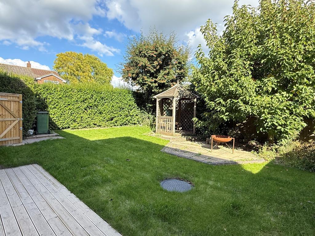 Rear Garden - With decking area leading onto lawn. Covered seating area.