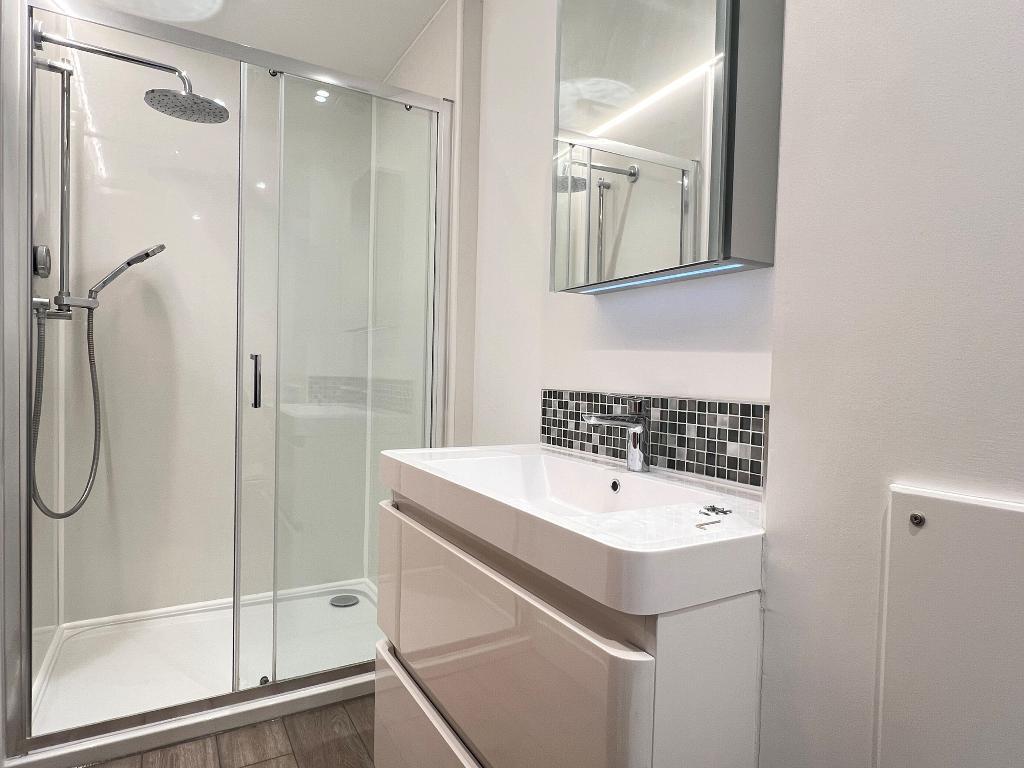 The First Floor Apartment comprises entrance hall, open plan living space, two bedrooms, two shower rooms (one en-suite), small balcony/decked area, one allocated parking space.