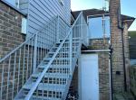 Entrance - External staircase to small balcony/decking area with glazed balustrade. Front door to entrance hall.