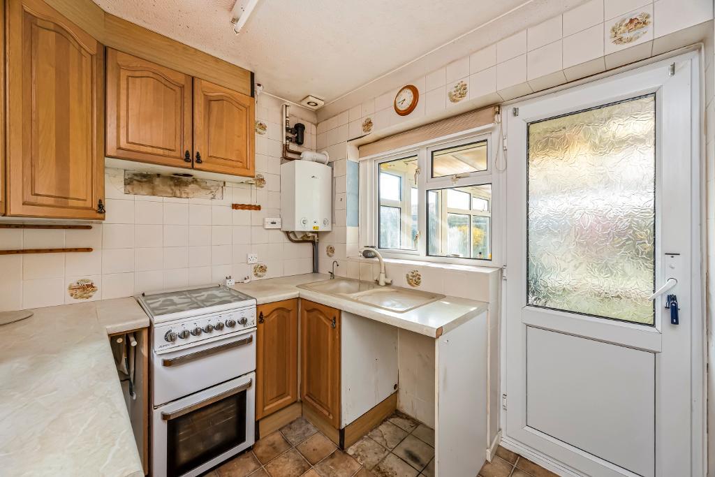 Kitchen - 9'10" x 7'3" (3.00m x 2.20m) Selection of Formica worktops. Sink unit. Matching cupboards and drawers. Wall units. Wall-mounted Worcester gas-fired boiler providing hot water and central heating. Space for appliances. Door to: