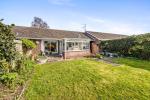 Rear Garden - Contained by wall and fencing. Paved section adjoining the bungalow with lawn beyond and borders.