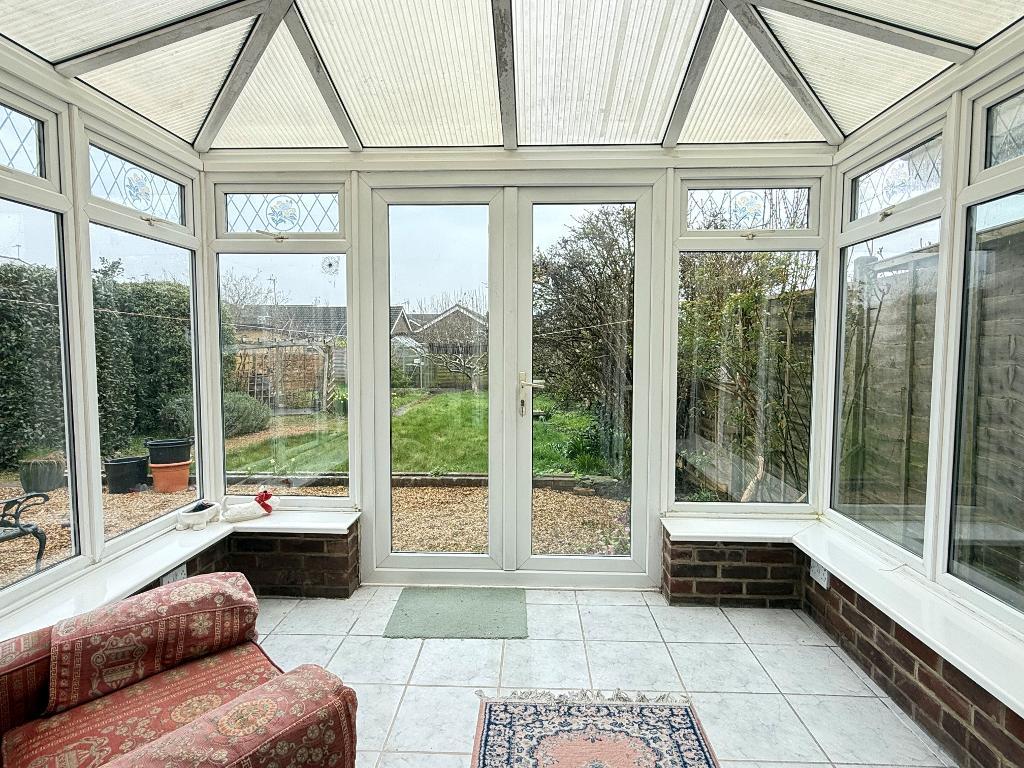 8'10" x 7'0" (2.68m x 2.13m) of PVCu construction with double-glazed panels, ceramic tiled flooring and French doors overlooking and opening onto shingle area.