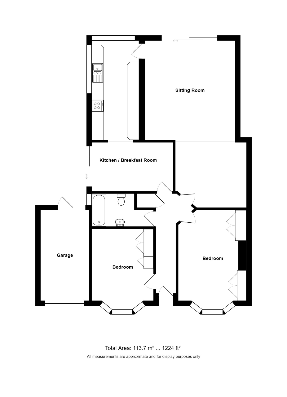 A two-bedroom semi-detached bungalow in an elevated position with fine views across the town to the skyline of the South Downs. The property comprises entrance hall, living/dining room with patio doors leading to terrace, breakfast area leading to kitchen, 2 double bedrooms and bathroom. There is an attached single garage, front garden with driveway for two cars and large delightful secluded west-facing rear garden.
