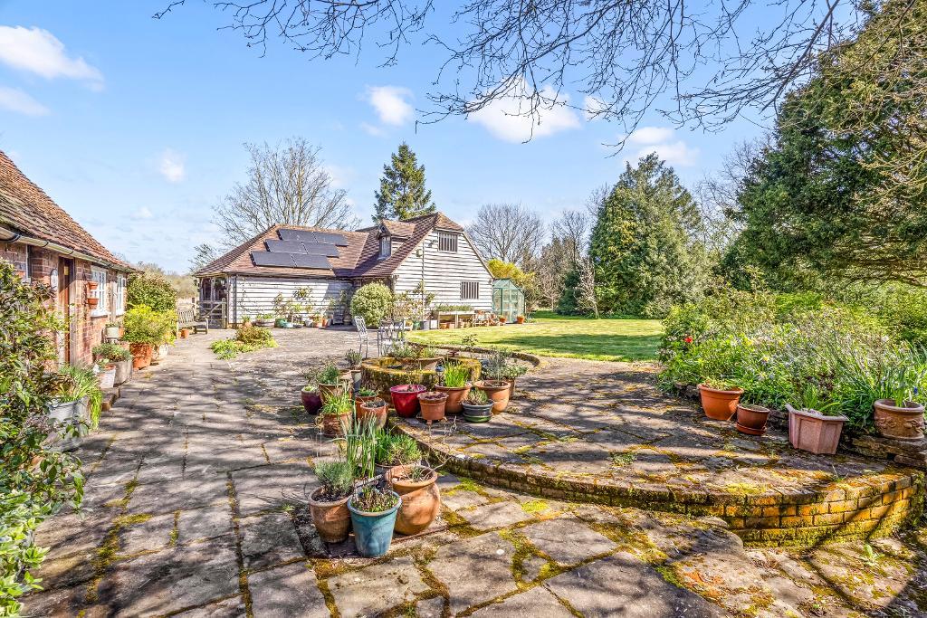 A delightful, detached Grade II Listed house and substantial outbuilding set in about one third of an acre in this idyllic country setting. This attractive period home dates back to the 18th century with brick and tile hung elevations and timber casement windows under a pitched and tiled roof. The house has been in the same ownership for over 30 years during which time it has been carefully maintained and enhanced with the addition of a substantial detached outbuilding arranged as a double car port and large workshop with studio room above. Internally there are exposed timbers, a particularly spacious open plan sitting room with feature fireplaces. There is oil fired central heating and photovoltaic cells provide a valuable energy source.