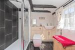 Shower Room - Modern suite of WC, washbasin and tiled shower recess.