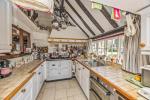 17'8" x 8'8" (5.40m x 2.65m) A charming room with vaulted ceiling and exposed timbers. Double aspect. Overlooking the rear garden. Tiled work surfaces with inset sink unit. Range of cupboards and drawers and matching wall units. Integrated refrigerator. Double oven. Twin-plate electric hob and electric Aga. Additional work surface and storage units. Tiled flooring. Stable door to garden.