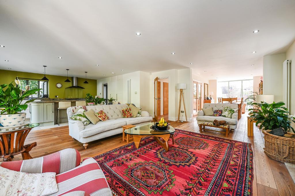 An individual architect-designed detached house of conventional construction with part-rendered and tile-hung elevations under an impressive pitched and tiled roof. The stylish contemporary design is light and spacious with an open-plan living area and pair of bi-fold doors opening to a secluded west-facing terrace with landscaped gardens beyond. There is a high-quality fitted kitchen, luxury sanitary ware, efficient gas-fired central heating system, full aluminium-framed double-glazed windows (low maintenance) with a soft green finish, alarm system, and oak internal doors and staircase. The mature garden has been created from the landscaped grounds of the original 20th Century mansion.