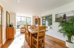 Family Room/Dining Room - 15'5" plus 2'3" bay x 10'4" (4.7m plus 0.68m bay x 3.15m) Oak plank flooring continuing from sitting room. Double aspect room with full height double-glazed bay window. Oak-framed, glazed double doors returning to reception hall.