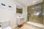 En-suite Shower Room - Fully tiled walls and flooring. Glazed shower area with drench shower head and hand spray attachment. Contemporary rectangular washbasin with storage beneath. WC.