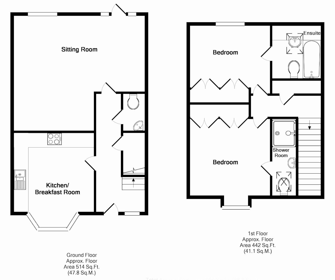 En-suite Shower Room - Tiled shower recess, Washbasin and WC. Radiator. Light and shaver fitting.