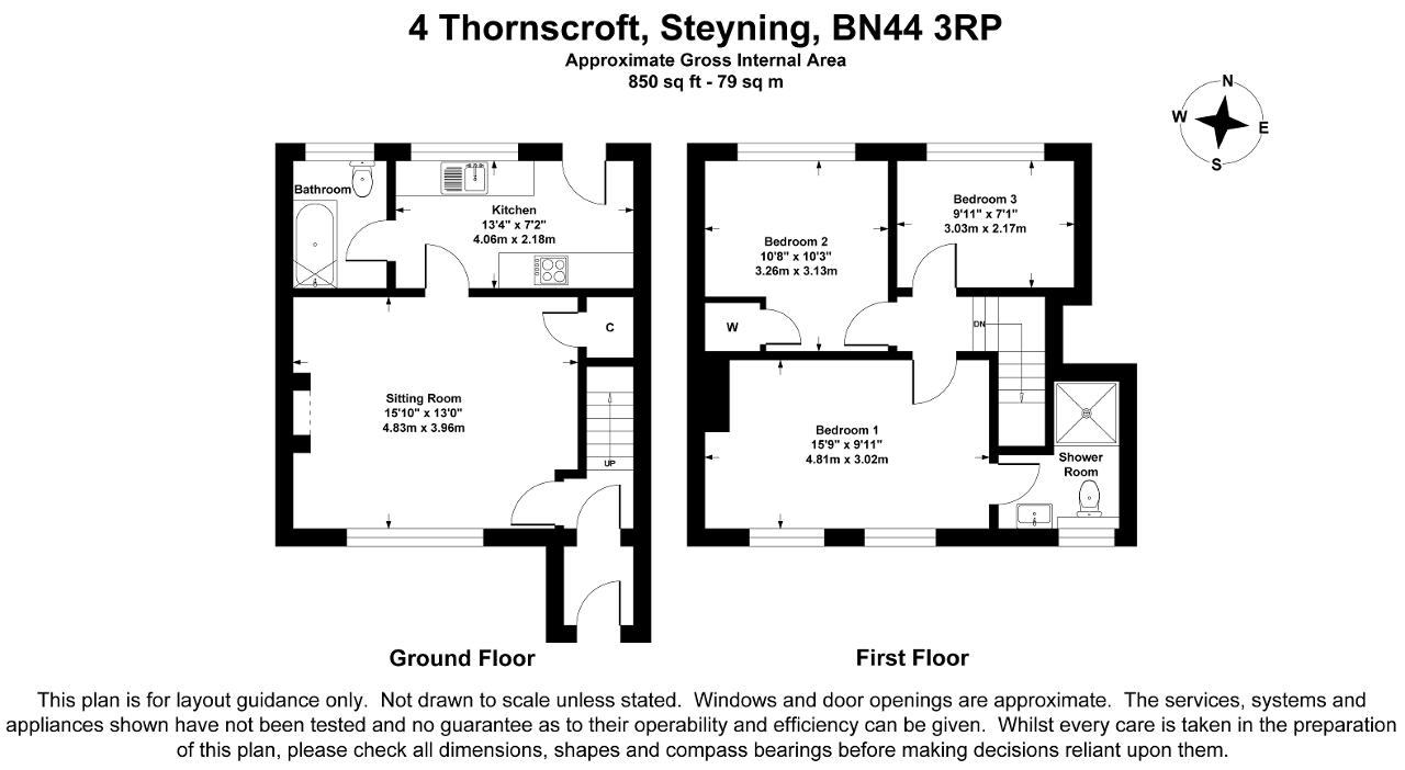 A well-presented terraced house built in the 1940s of conventional construction with brick elevations and replacement double-glazed windows under a pitched and tiled roof. The house overlooks open green space in this pleasant traffic-free setting, and has convenient off-road parking and a good-size rear Garden. Internally, the house is well presented with modern kitchen and bathroom fittings, three double bedrooms and an en-suite shower to the main bedroom. The house is ideally located for a young family, within just a short walk of the primary school and Steyning High Street. There is gas-fired central heating to radiators.
