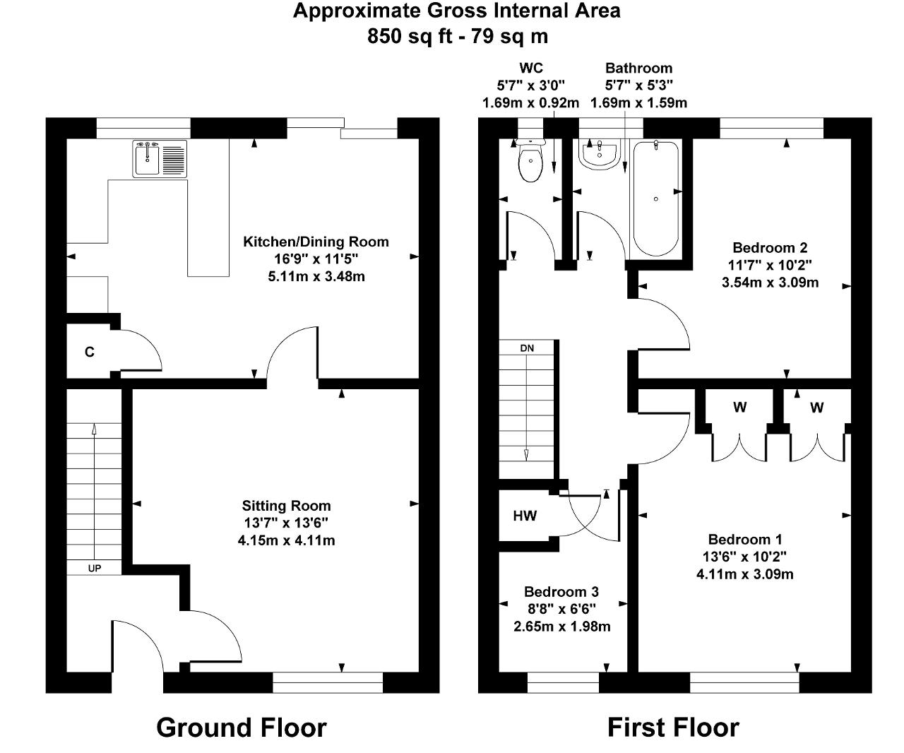 Bedroom 3 - 8'8" x 6'6" (2.65m x 1.98m) Cupboard housing the gas-fired boiler and hot water tank.