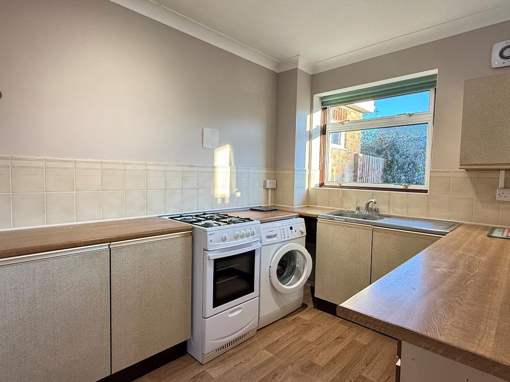 Kitchen/Dining Room - 16'9" x 11'5" (5.11m x 3.48m) Double radiator. Sliding patio door leading onto the rear garden. Kitchen Area: Single drainer stainless-steel sink unit with adjoining wood-effect work surfaces. Base cupboards and drawers. Space and plumbing for washing machine. Space for cooker. Further appliance space. Part-tiled walls. Double-glazed window. Understairs cupboard. Extractor fan.