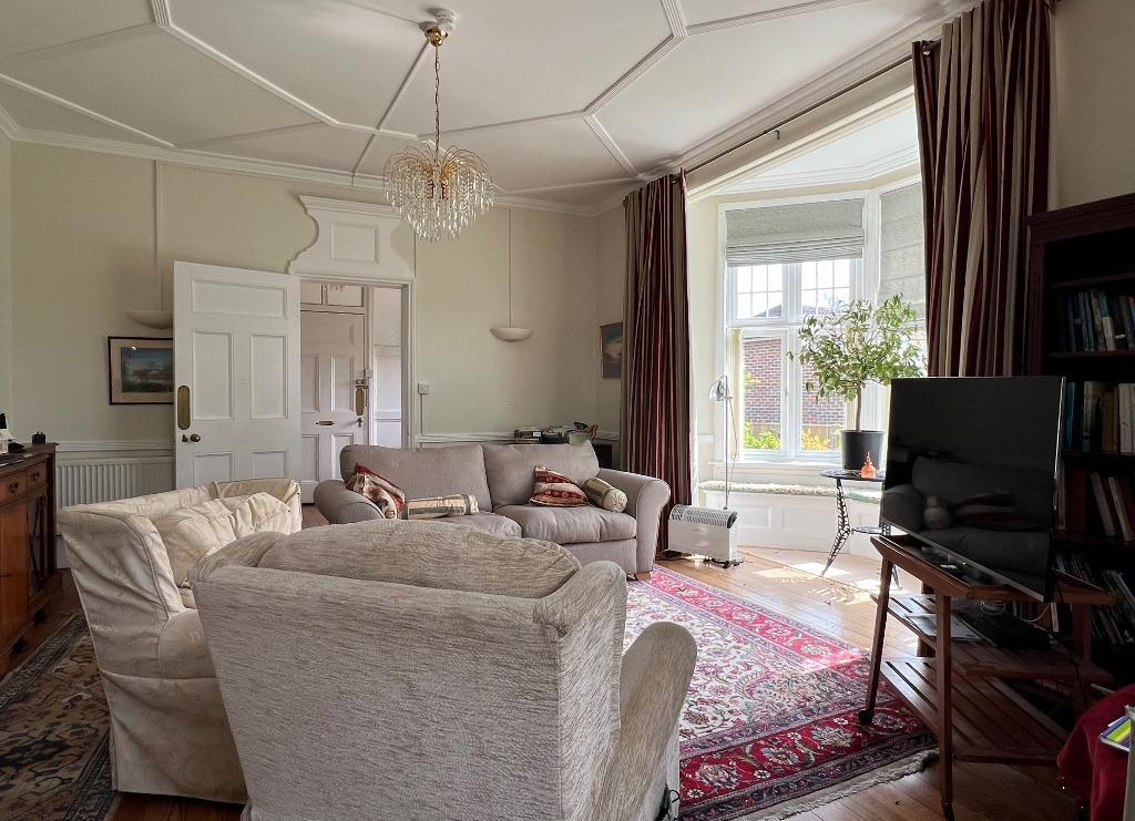 Sitting Room - 20'3" x 14'6" (6.17m x 4.42m) Double aspect. Lofty ceiling. Feature fireplace. Exposed pine floorboards. Deep bay window with bench seating. Two double radiators.