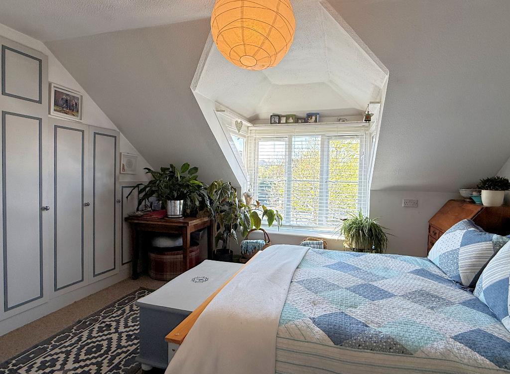 Double Bedroom - 12'8" x 12'8" (3.85m x 3.85m) PVCu double-glazed window with views to the ridge of the Downs. Night storage heater. Excellent range of wardrobe cupboards with further cupboards over.